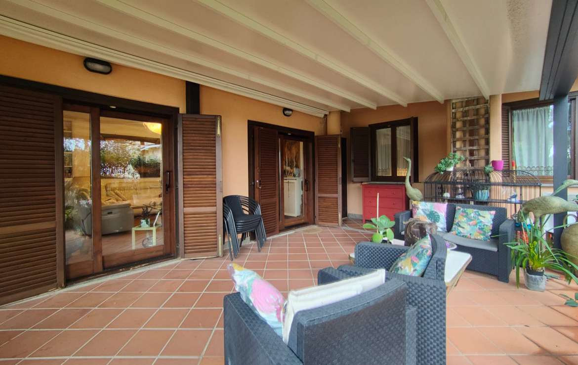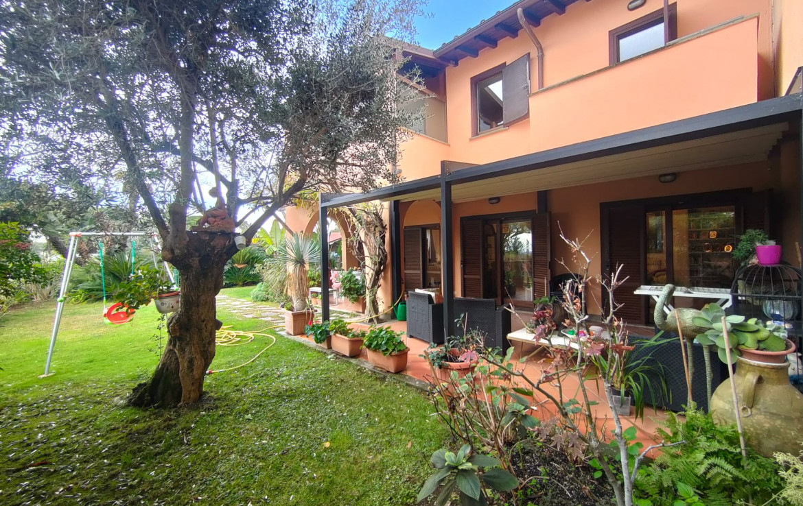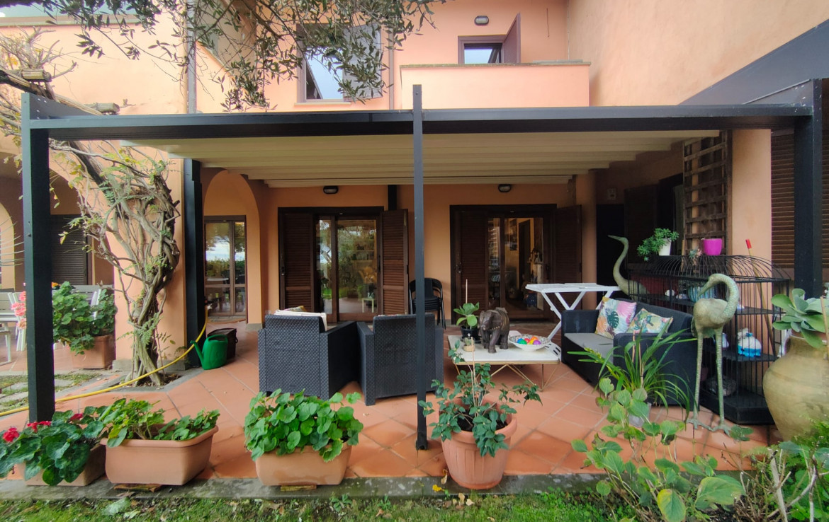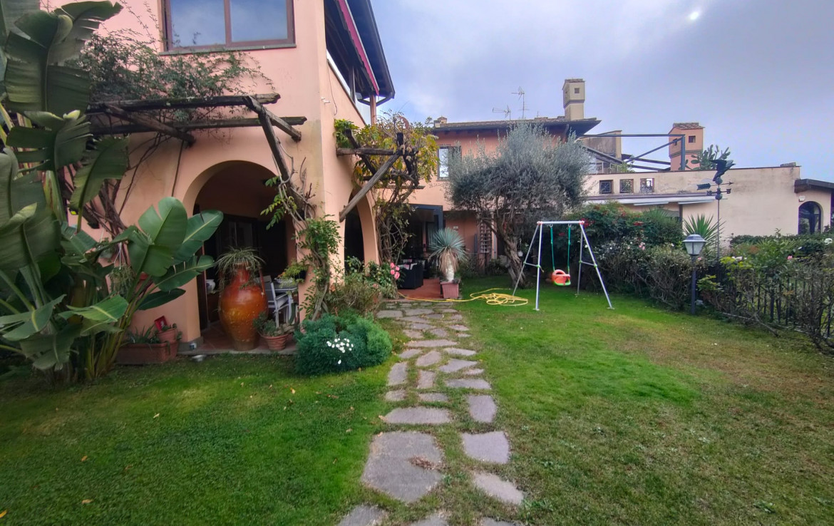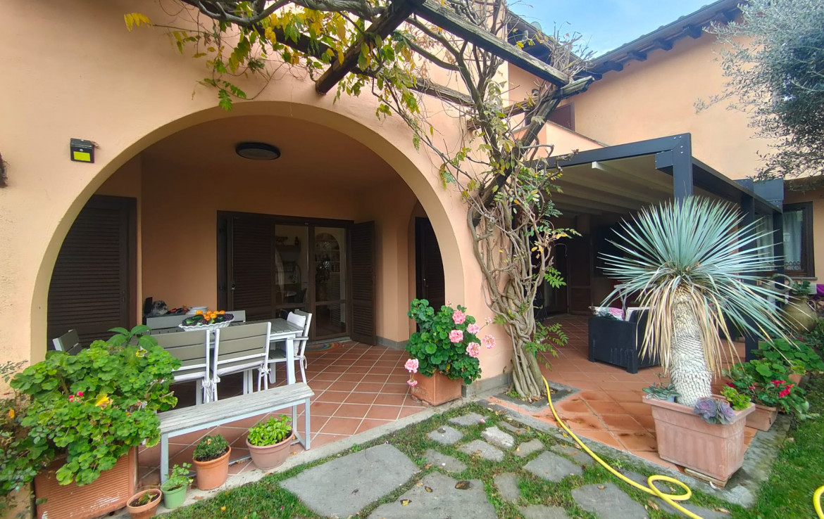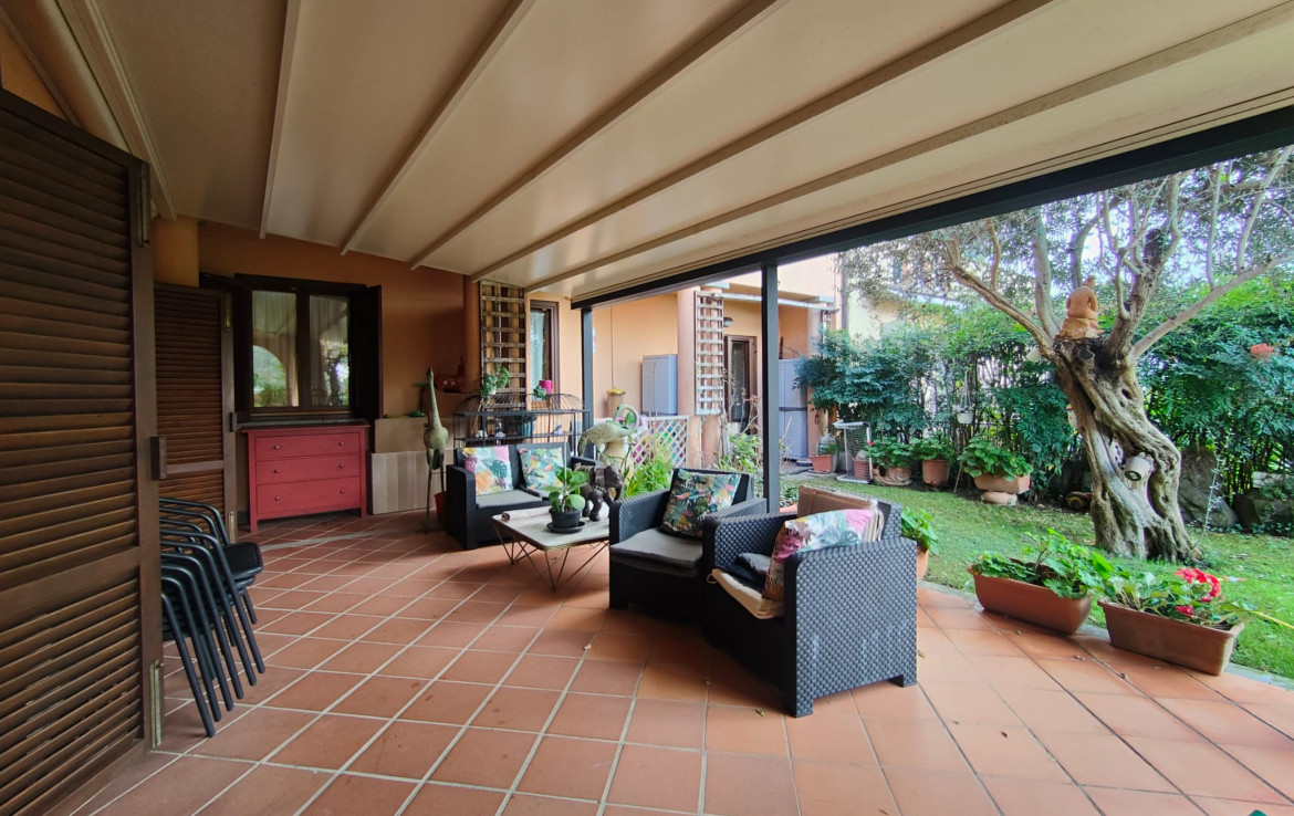 L’immobile, che gode di un’ottima esposizione ed orientamento è accessoriato di un ampio giardino a livello di mq. 200 circa ben curato e attrezzato con parti adibite a prato ed aree pavimentate vivibili per gran parte dell’anno, accessoriate di area porticata e pergotenda.