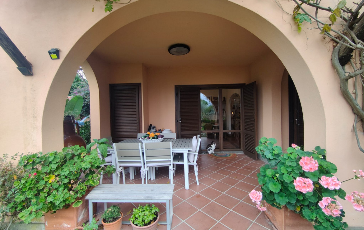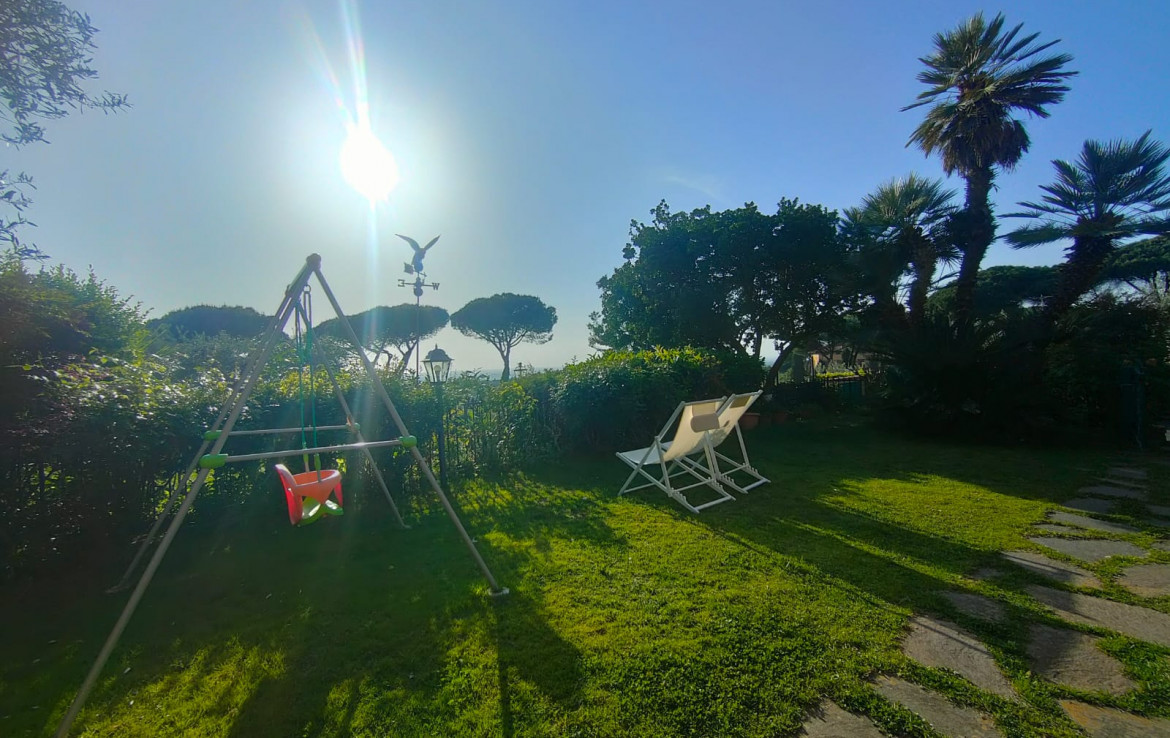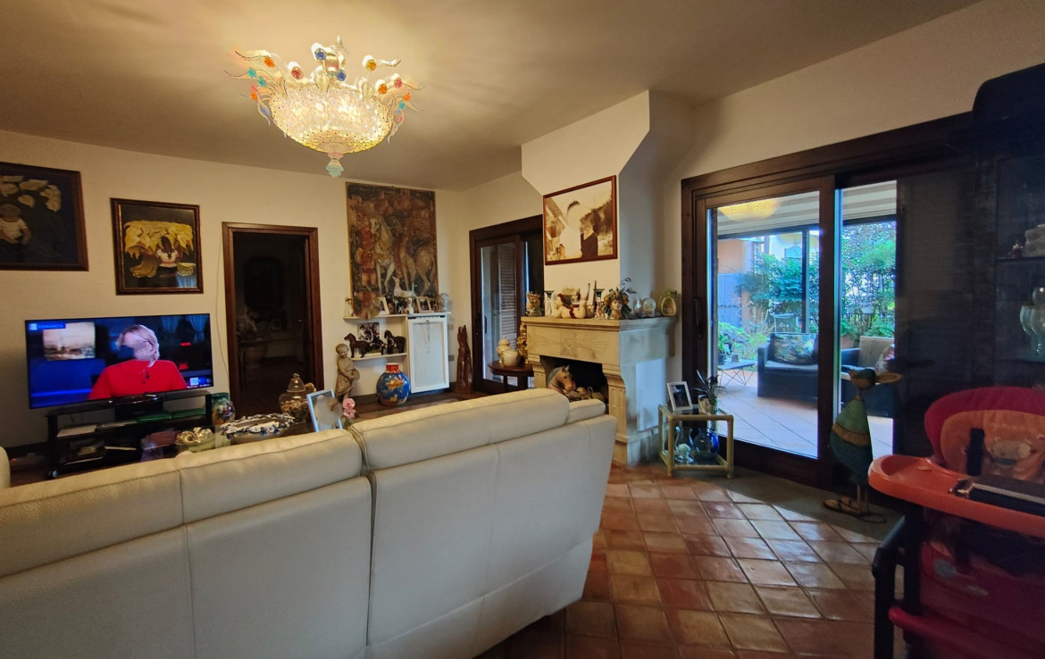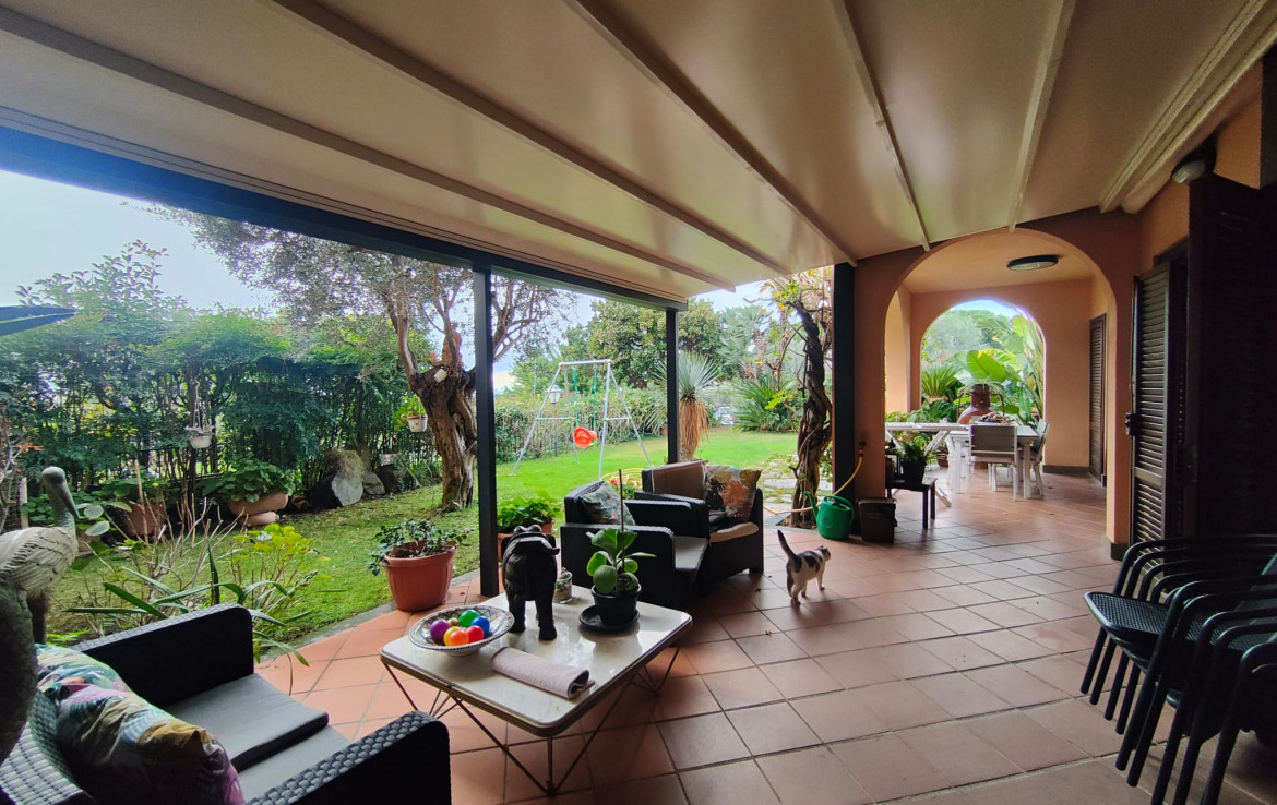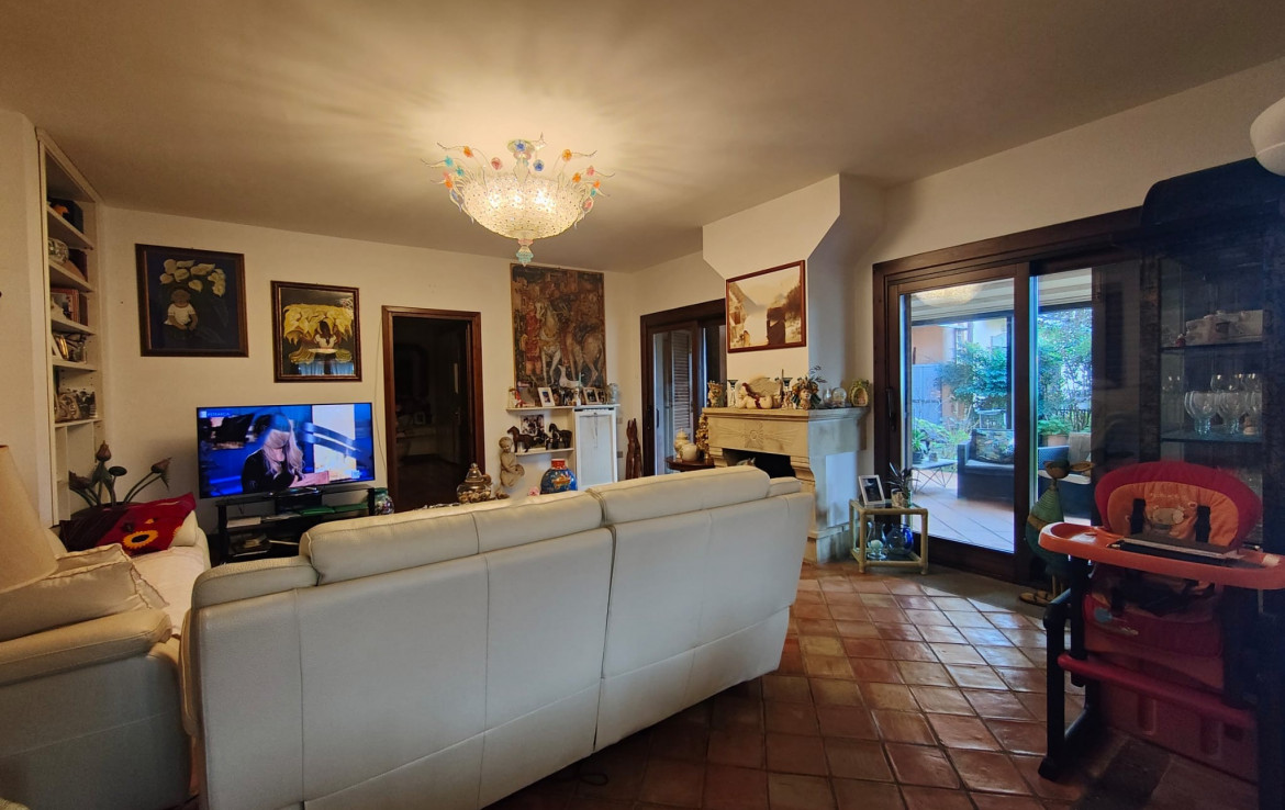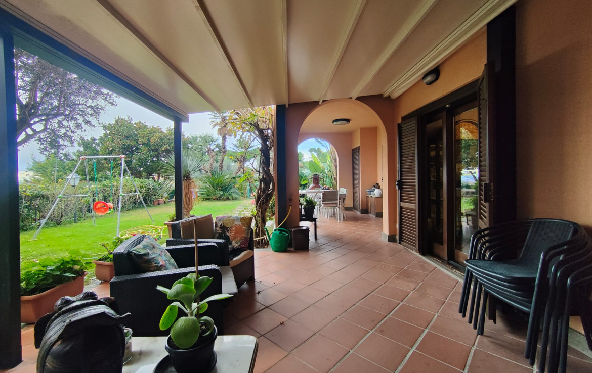 L’immobile, che gode di un’ottima esposizione ed orientamento è accessoriato di un ampio giardino a livello di mq. 200 circa ben curato e attrezzato con parti adibite a prato ed aree pavimentate vivibili per gran parte dell’anno, accessoriate di area porticata e pergotenda.