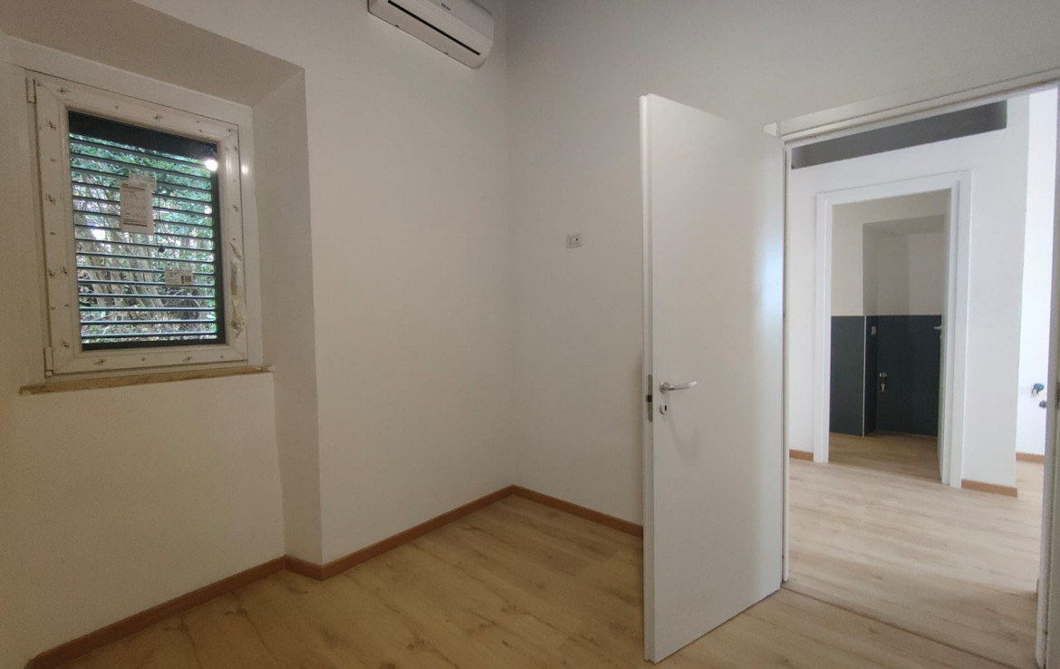 L’appartamento è completamente ristrutturato ed è composto da soggiorno, cucina due camere, disimpegno, studio e doppi servizi, munito, di sicuro valore aggiunto, di un prospiciente giardino di mq. 150 circa sul retro della proprietà che dona sfogo nel cuore del parco dei Castelli Romani.