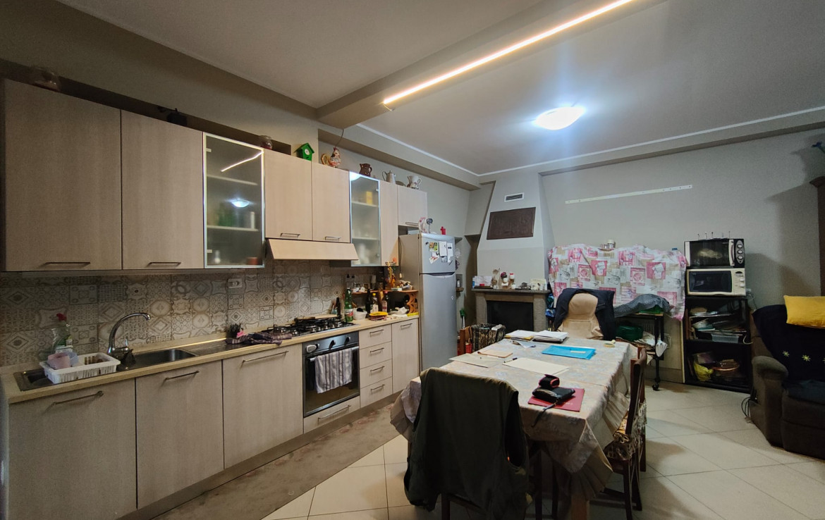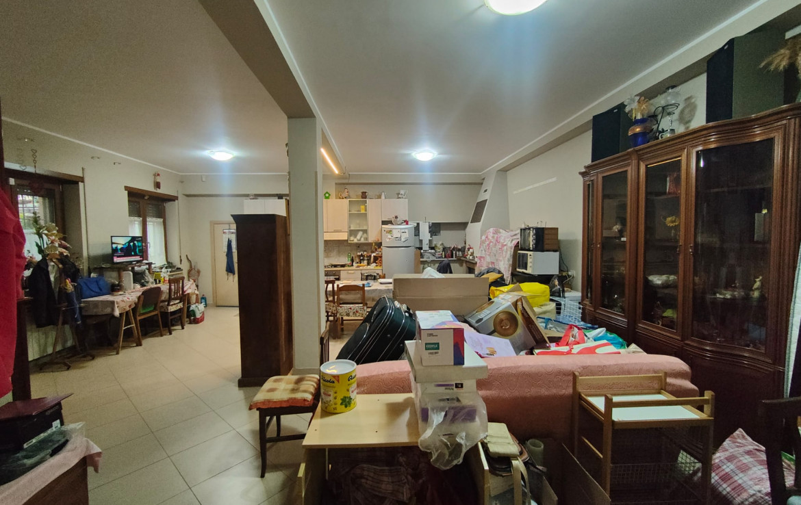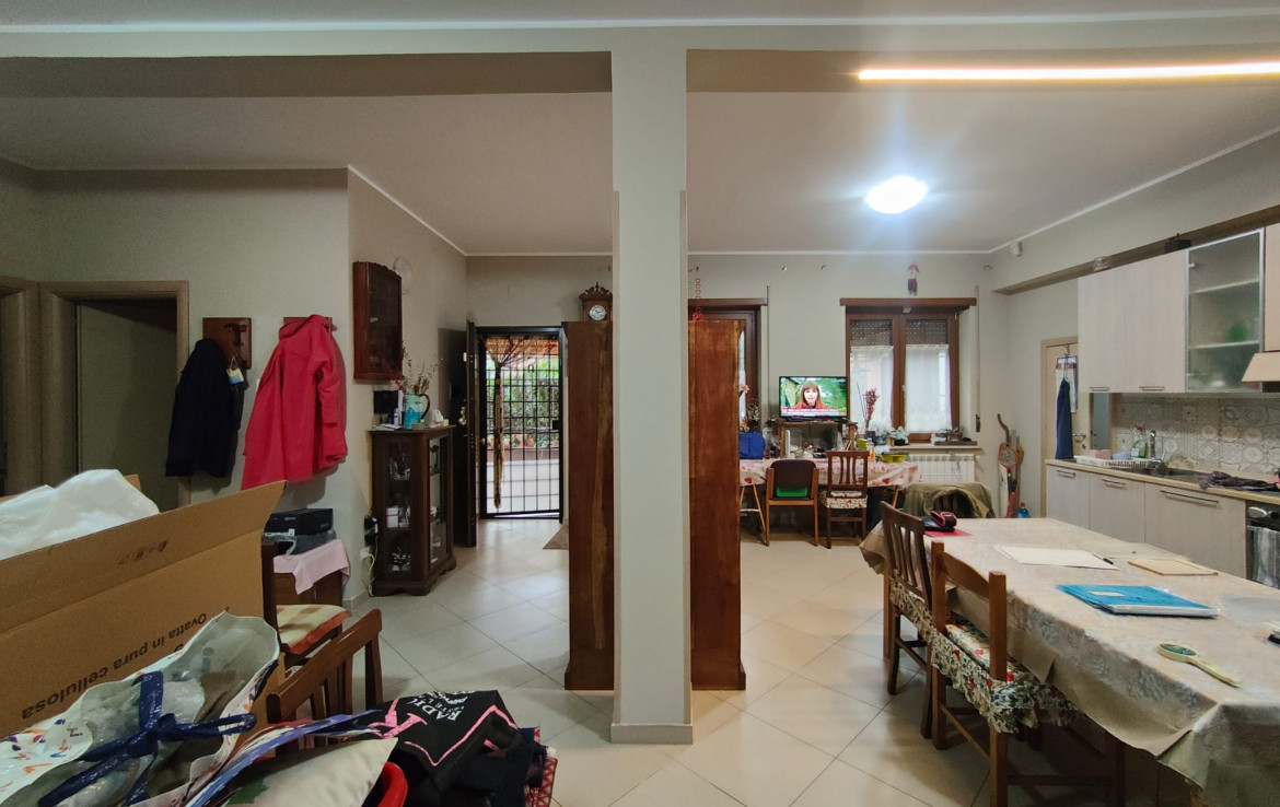 L’immobile ampiamente finestrato è composto da ampio soggiorno con cucina a vista, disimpegno, due camere da letto, studio, ripostiglio, servizio con box doccia e lavatoio, confortato da un utilissimo giardino pavimentato munito di passo carrabile per accogliere più autovetture. Completa la proprietà, di sicuro valore aggiunto un prospicente e confinante magazzino di mq 70 adattabile a molteplici usi.